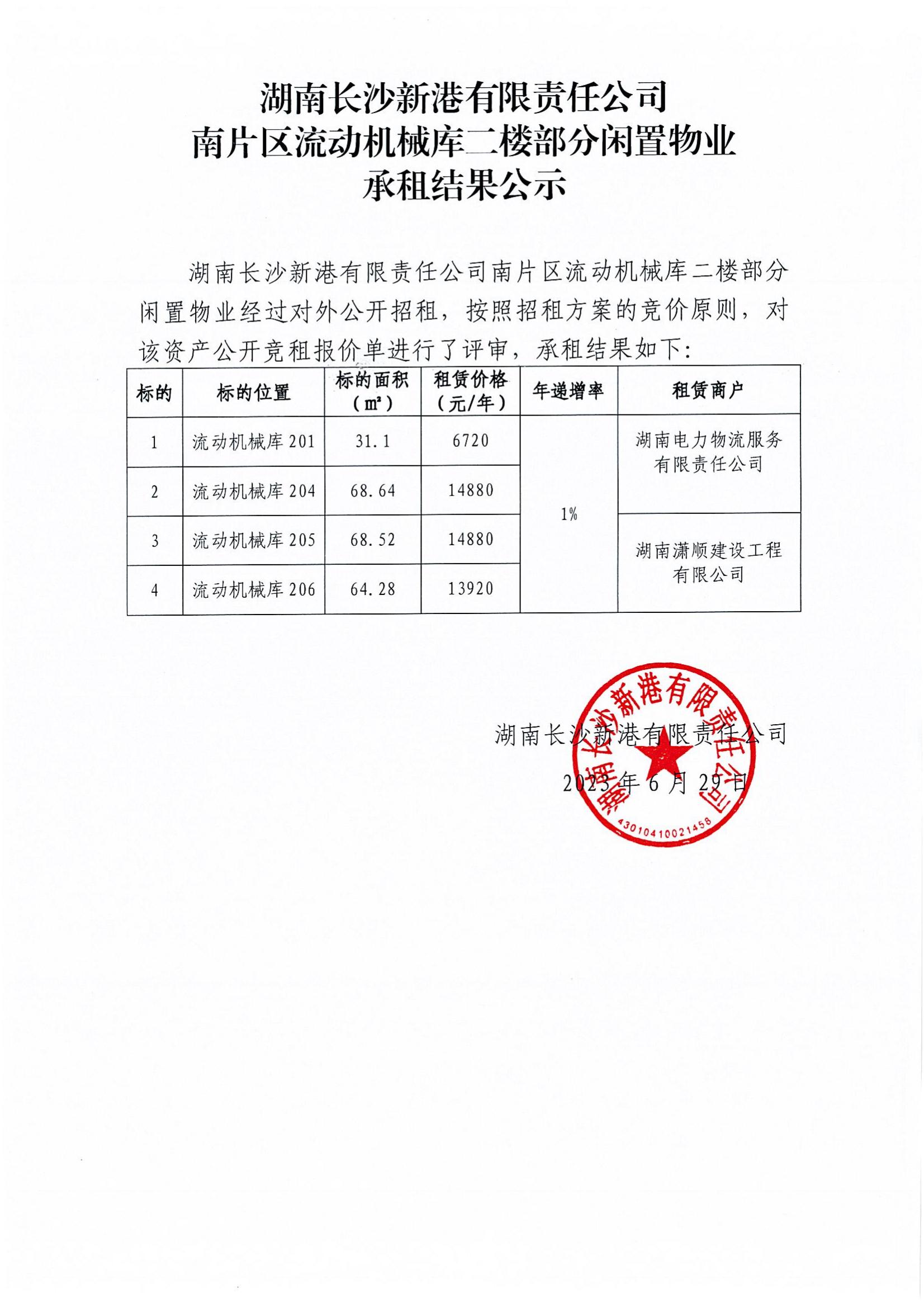 新港公司南片區(qū)流動機械庫二樓部分閑置物業(yè)承租結(jié)果公示